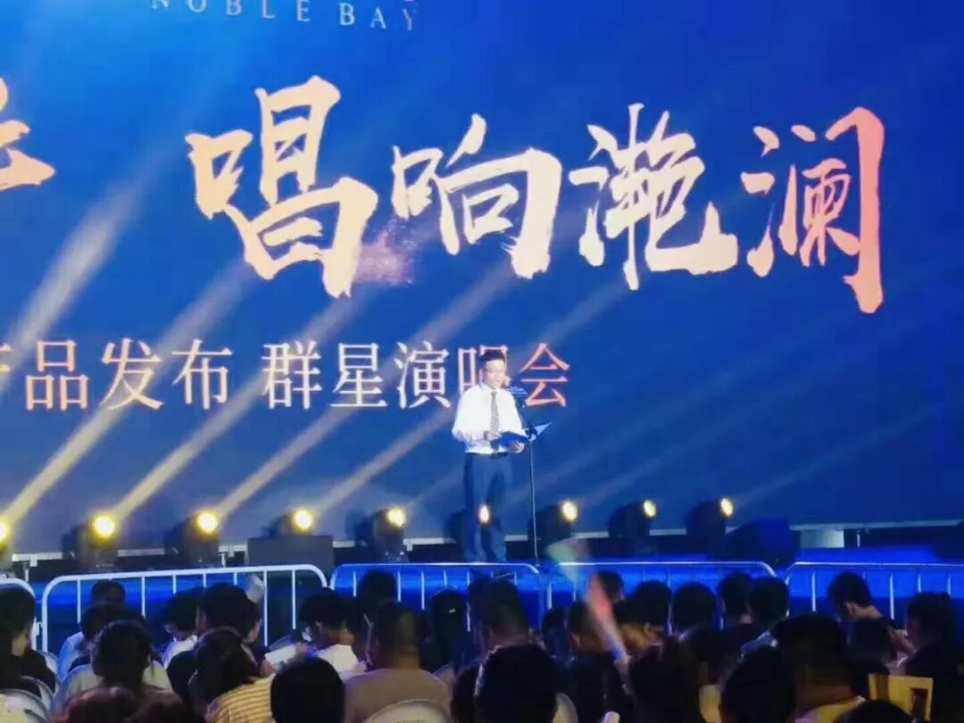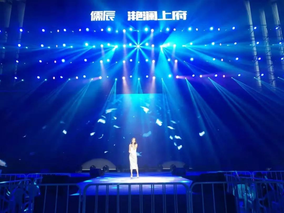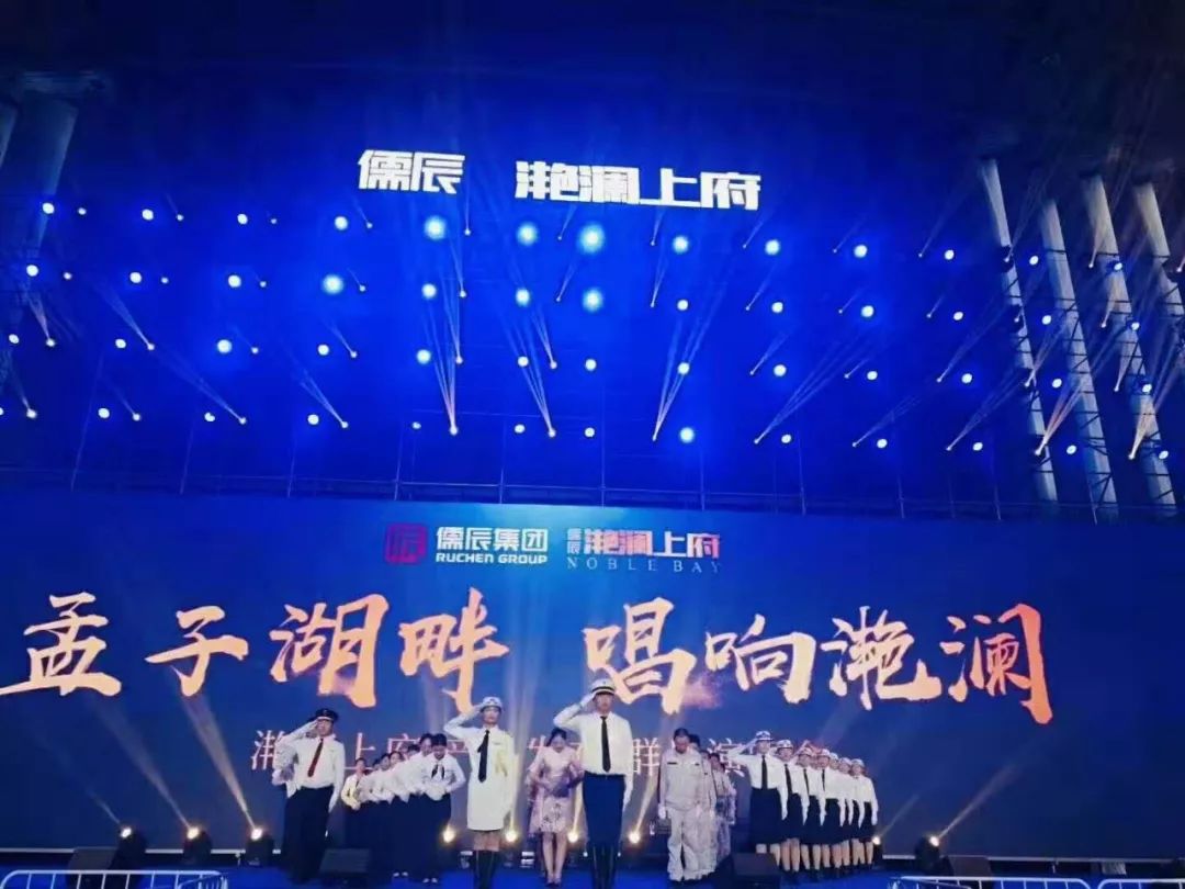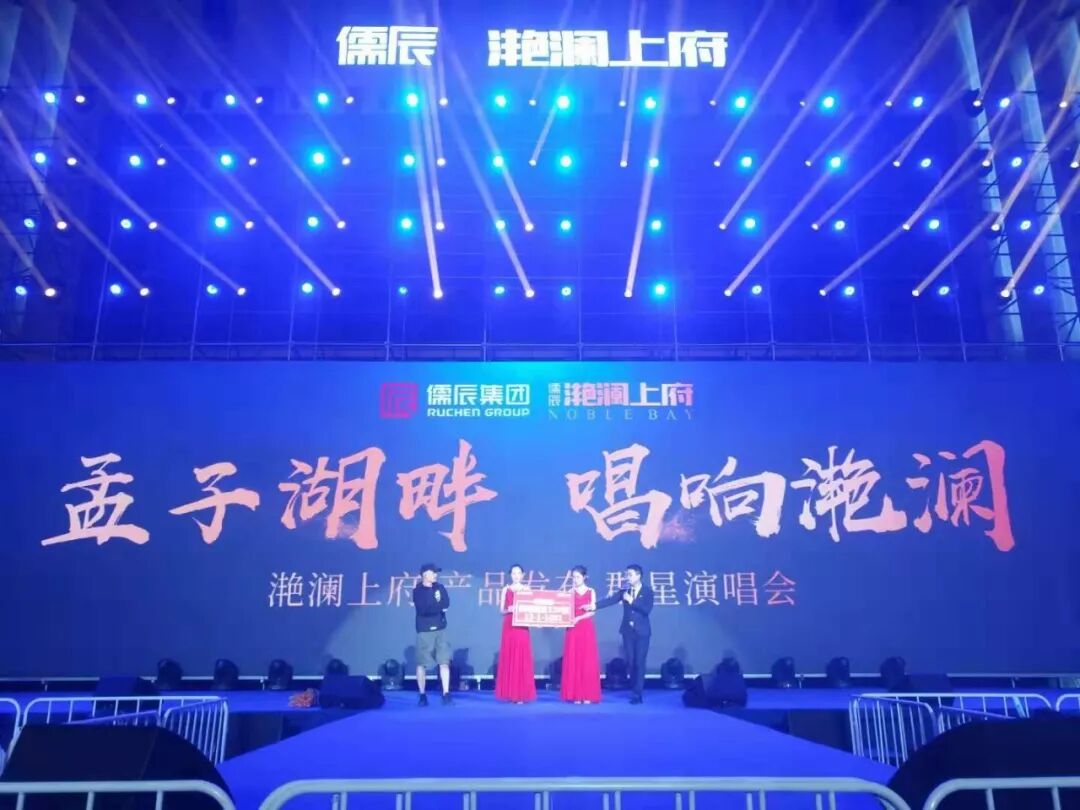 19:30旋律激昂的音乐响起,伴随着酷炫的灯光秀,儒辰·滟澜上府“孟子湖畔,唱响滟澜”,产品发布群星演唱会正式开始!