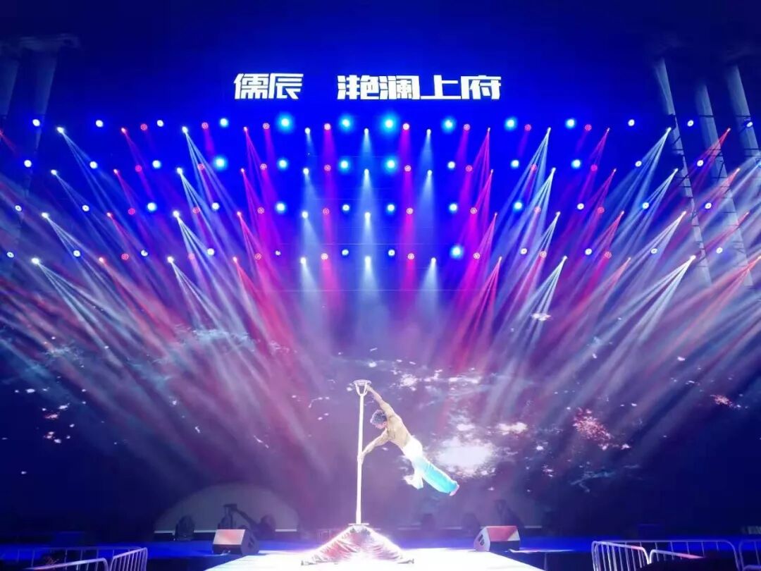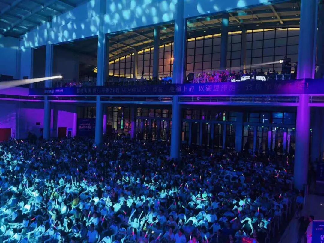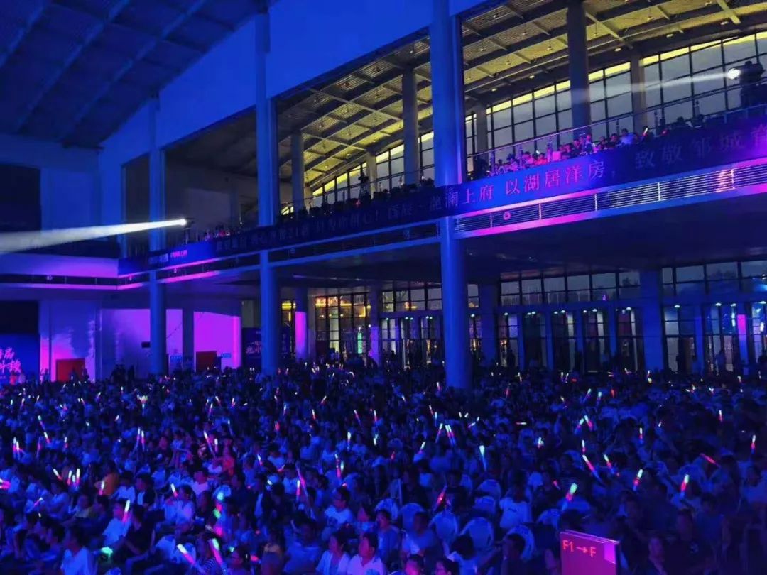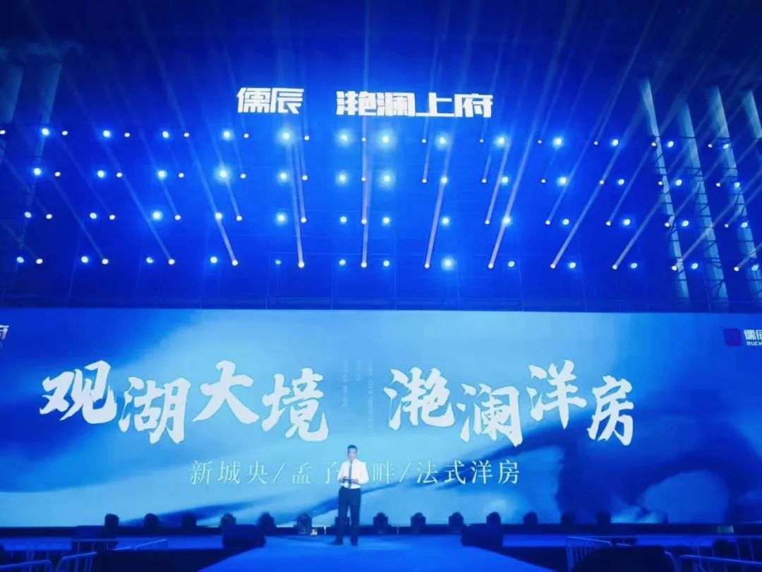 19:30旋律激昂的音乐响起,伴随着酷炫的灯光秀,儒辰·滟澜上府“孟子湖畔,唱响滟澜”,产品发布群星演唱会正式开始!