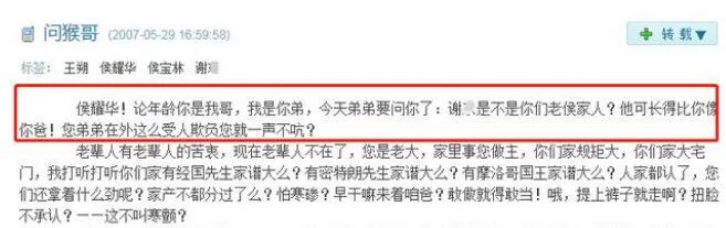 有网友质疑王朔说话没证据,他干脆愤慨地发誓打赌:“这事全北京文艺界人人都知道,不信你挨个问去,叫上侯耀文化验DNA去,要不是,我赔他们老侯家100万。”