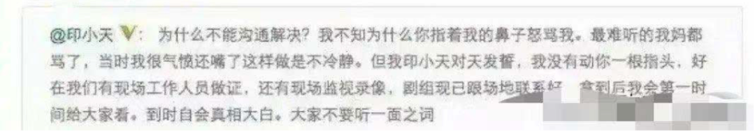 当时现场监控录像还没公开,印小天的文字辩驳,显得苍白又无力。