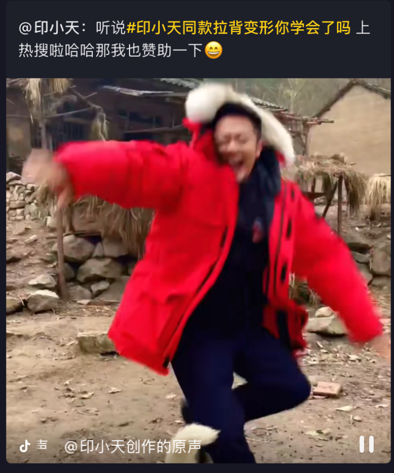 今年11月28日,印小天的一段舞蹈被送上热搜。