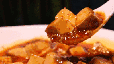 制作方法:①首先制作肉味噌。将肉馅用绍兴酒腌制,之后在锅中加入少量开水对肉馅进行翻炒,并加入酱油、甜面酱进行调味。②肉味噌做好后,锅中加油炒制豆瓣酱,后加入鸡汤、豆豉、肉味噌。③不使用菜刀,而是用“手掰”的方式将豆腐掰成块下锅,盖上锅盖小火炖煮约两分钟。④两分钟后加入青蒜,加水淀粉进行勾芡,最后加入山椒油,一道赵流麻婆豆腐就完成了。