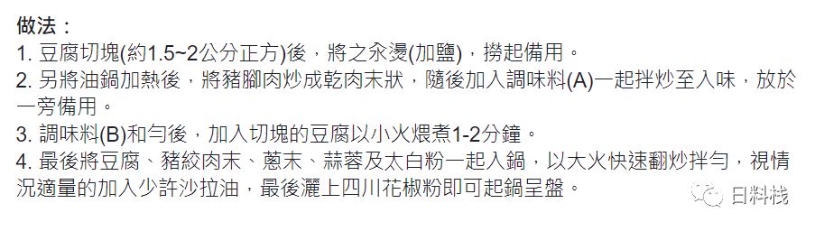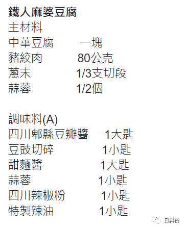 陈建一公布的铁人麻婆豆腐制作方法。via:zh-hk.facebook.com