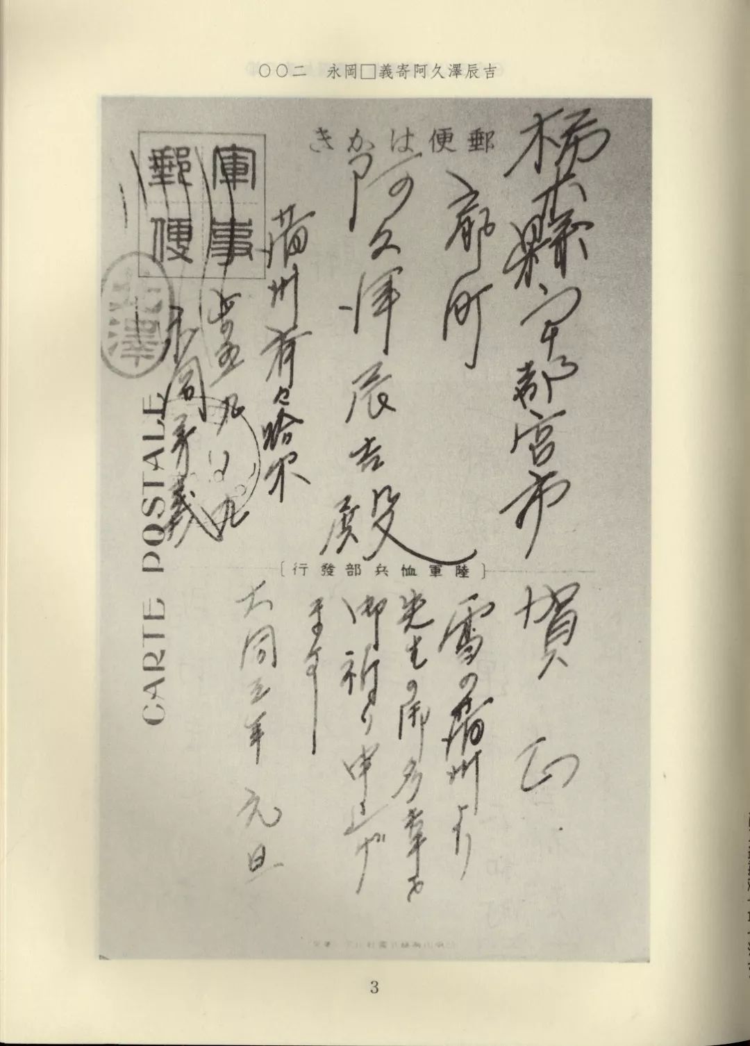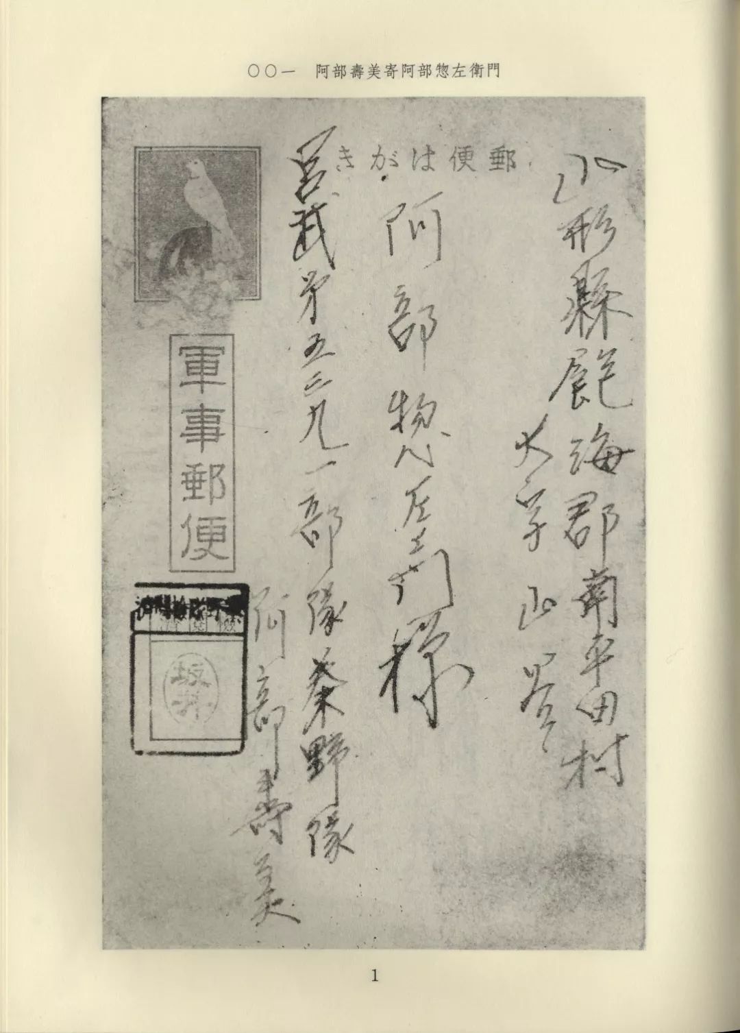 (二)所收家书大多搜集自日本,多由收信一方保存,故大体按收信人姓名排列。有少量信件收信人不详,或姓名模糊不可考,或仅有亲属称谓、官衔名称等,此种情况则另按发信人姓名排列。为读者利用便利起见,通信人姓名均译为中文,再以收、寄信人姓名音序排列,并加以编号,如“〇〇一阿部寿美寄阿部惣左卫门”。寄信人不详的,姓名以“无名”代之,其信件置于同一收信者的最后;同一寄信人发给同一收信人的多封信件则注明数量,如“小川武好寄长谷川传藏(四通)”。姓名中如有不可考之文字,则以“□”代替;姓名在不同信件中如有变化,如“宇野松次郎”“宇野松二郎”等,经考为同一人的,则作统一。另有收发信者均不详之信件三十八封,对比字迹、内容仍难以考出通信者姓名,而信件内容又确有价值,故保留,统一置于全书最末。