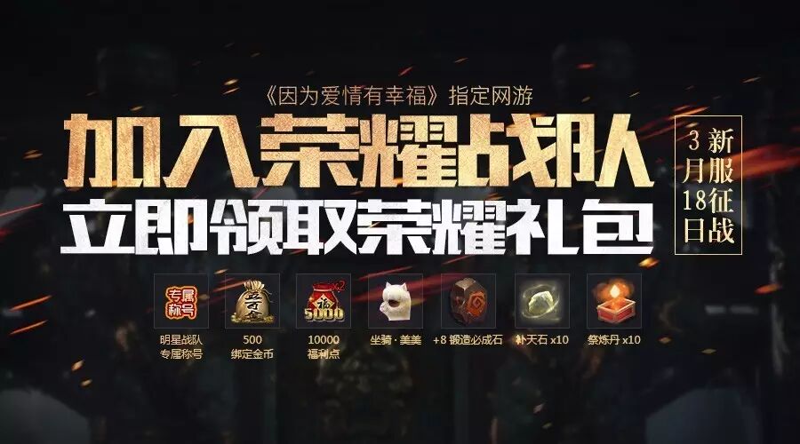 与电视剧《爱有幸福》的合作,让《天之禁》在娱乐界再度焕发异彩。剧中主演陈伟霆、唐艺昕等一众大牌明星更是直接加入《天之禁》,组建自己的荣耀战队。加入陈伟霆、唐艺昕、魏大勋的荣耀战队,100%获得明星亲赠的588元荣耀礼包。此外,战队中积分最高的战队,其所有成员都将获得50元商城钻石,更有机会和陈伟霆等明星一起在《天之禁》中享受共同征战的快感。