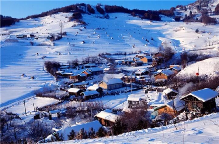堆满积雪的民房和村落,袅袅娜娜的炊烟,黑色的树林,白色的小山,弯曲的山路,半埋在雪中的屋檐,梯田形成的银光闪闪的雪坡,篱笆墙的影子,水墨画般的冬日美景使这里形成了摄影、绘画者备受青睐的地方。