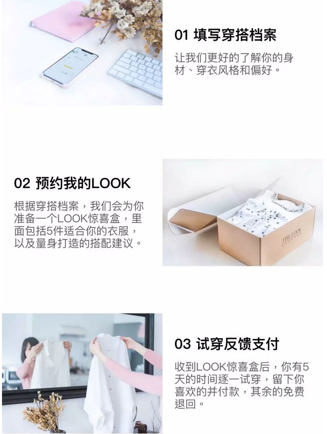 现在扫码关注“THE LOOK 时尚搭配师”服务号,点击立即体验,认真填写档案后就安心等着收礼盒了。并且在整个过程有任何问题都可以咨询服务号。
