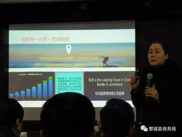 县政府副县长侯贵华,网来云商环球信息技术有限公司总裁郑玉鸿,各乡镇、街道办事处电子商务分管负责人,重点外贸企业主要负责人及业务经理等共计100余人参加了会议,会议由县商务局局长宋晓波主持。侯县长在会议上要求各外贸企业要抓住这个机遇,积极拓展跨境电商业务,实现线上线下交易同步提升,推动企业不断做大做强。网来云商总裁郑玉鸿就打造跨境(鄄城)海外专区做了精彩演讲。