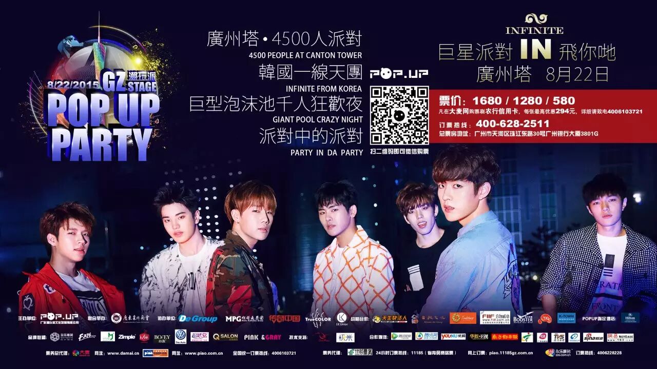 2015 POP UP INFINITE PARTY(简称3P PARTY)这次派对的特别之处在于,不仅是满足粉丝心愿的偶像演唱会,更是和所有年轻人一起的潮玩派对,称得上是:“广州的年度盛趴”,你想要的,都在这!