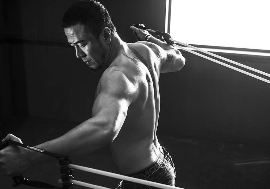 发达的背大肌+暴走的肱二肱三,好身材全靠撸铁,45岁的杨坤大叔可没少去健身房打卡。