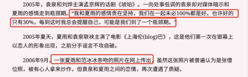 但是2006年,两人恋爱长跑将要7年,先是一张夏雨和某女星亲吻照片流出,引发舆论热议。过后没几个月,袁泉宣布和夏雨分手。