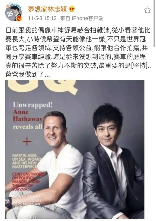 而如今25年过去,已经48岁的林志颖渐渐明白,人生的组成就是不断的起起伏伏,出现频率相同的成功与失败,以及永不缺席的意外与不确定。