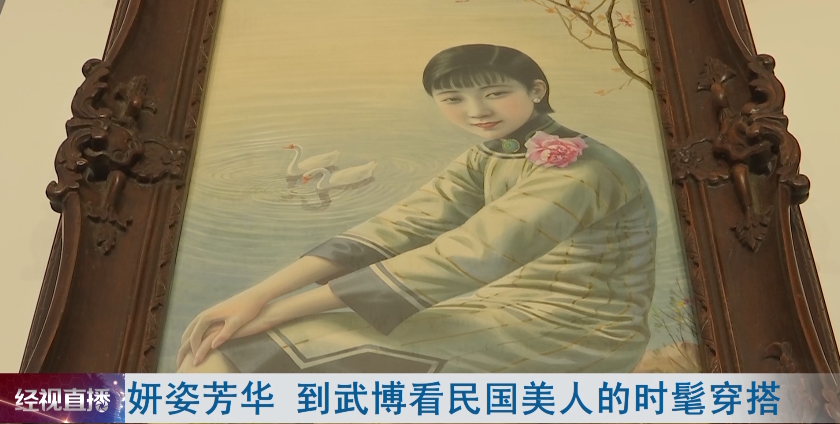 武汉博物馆社教部工作人员杨露雯介绍,可以从月份牌广告画中了解到,女性妆容的一些变化,唇部不再以樱桃小嘴唯美,而是按照唇形本来的形状进行描绘。旗袍的样式在上世纪20年代,还是以宽松、不修身的版式为主,到了上世纪30年代,就以高领的样式修饰女性的颈部曲线,收紧的袖口以及收窄的腰身,可以更好的展现女性曼妙的身姿。体现了女性自我觉醒,从闺阁走向社会的时尚风情。