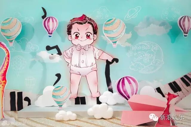 背景板上有朵朵的卡通形象,看样子是个蛮帅的小伙子。