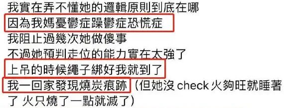 关注到一个细节,谢依霖在今年母亲节发了一篇小作文,写到:小时候一直以为自己亲妈是继母,情绪波动很大,不仅脾气差,还经常动手打人,很多次都想着要自杀。后来才知道自己妈妈是家族遗传的精神疾病。