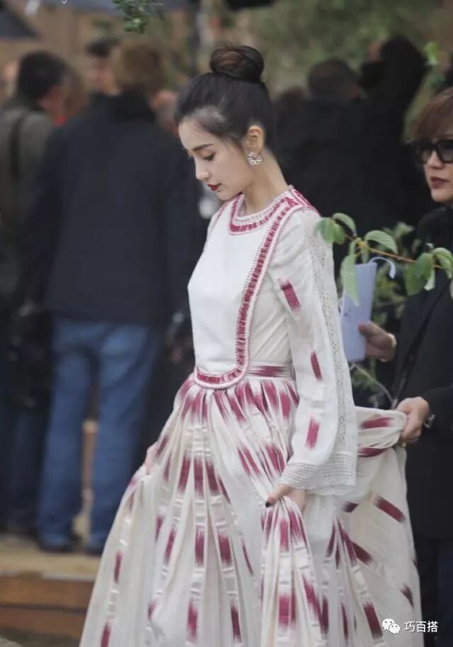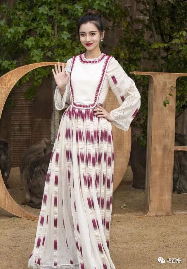 ▲搭配解析:一身摩洛哥风情礼服裙现身,让Angelababy多了几分异域风情。搭配的发型也是相当讲究,花苞丸子头简约但却大方。最后配上复古红的口红与妆容,真是让人惊艳,就连网友随手拍的生图都美得普通一幅画卷,几乎与工作室发出的精修图无差。