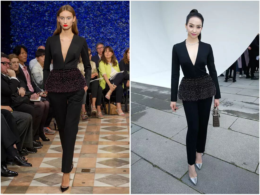 宋茜身穿Dior 2012秋冬高级定制系列套装亮相秀场。