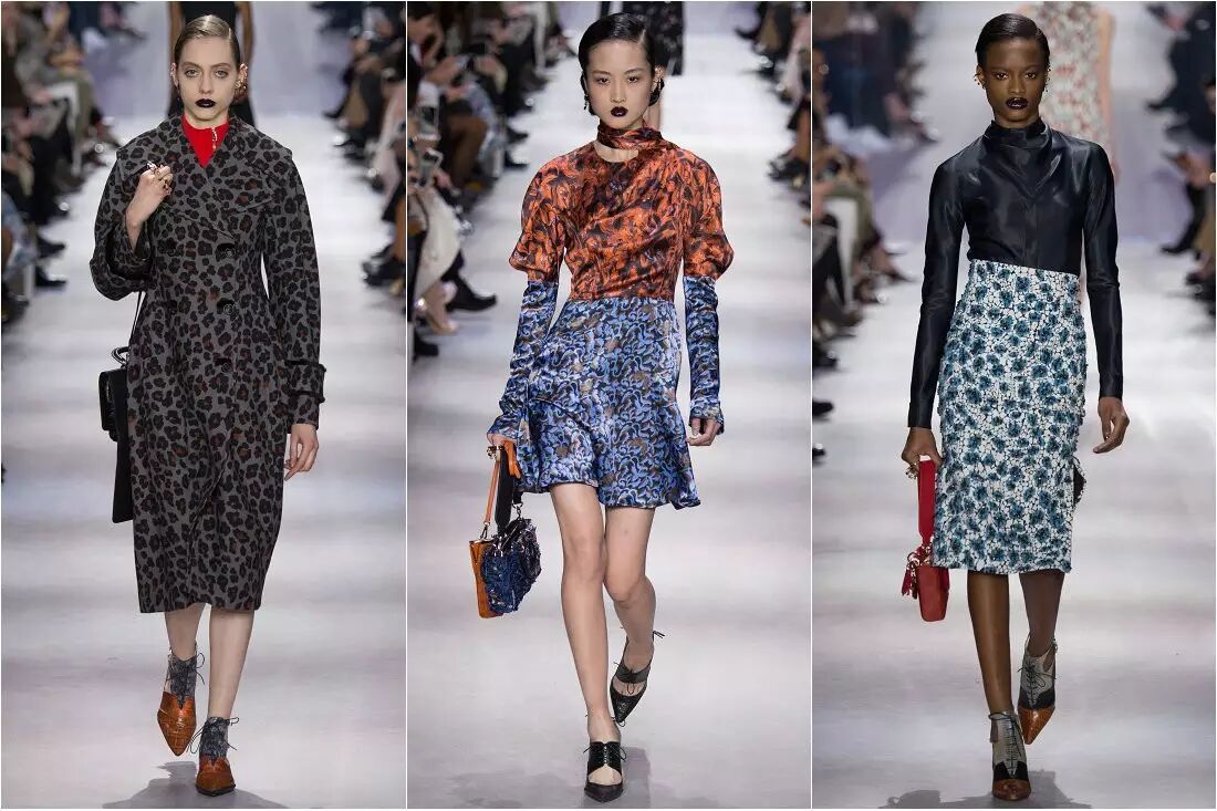 细碎的颜色、印花图案上的精美刺绣,再带上一点豹纹,一切都是如此的反复与美妙。经典的 A-Line、Y-Line 在加入不对称元素后重获新生,体现出反叛与不羁。