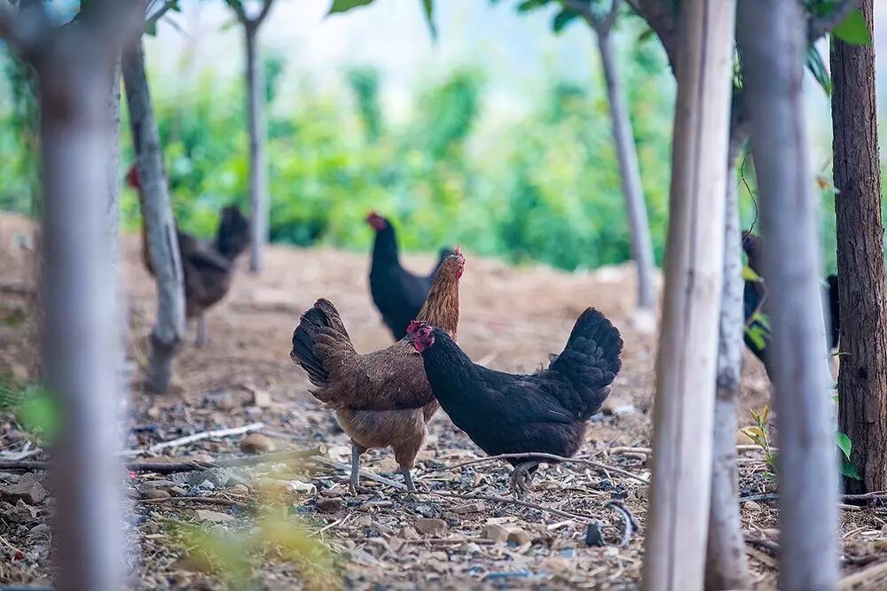 秋天,河岸两边的花和树上的叶子都凋谢了。树上结了许多果子,有红通通的苹果;红的发紫的葡萄。在秋雨的洗礼下,果实变得格外诱人。果园里的散养笨鸡显的格外精神,上窜下跳的在果林间寻找食物,不过在果林里寻宝捡蛋的时候是最快乐的时光。
