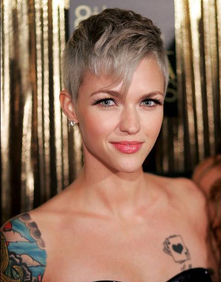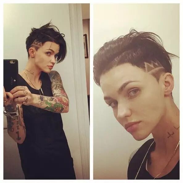 其实Ruby Rose尝试过很多款短发,在视频当中出现的油头发型固然帅到没边,但是她也有很多其它的短发造型。