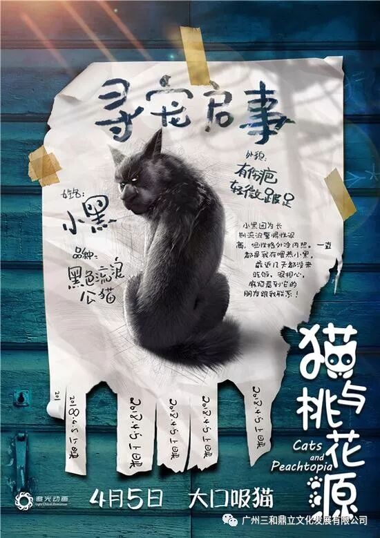 动画电影《猫与桃花源》将于今年4月5日上映,主题曲《流浪的终点》歌曲及MV已于今日上线,更多精彩,敬请关注。405,我们一同期待!