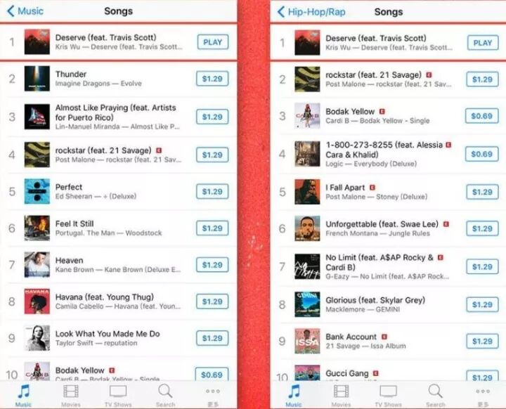 而他的单曲作品,尤其是和Travis Scott合作的Deserve,在Spotify和iTunes两大平台上线,用了两小时便登上榜单第一;
