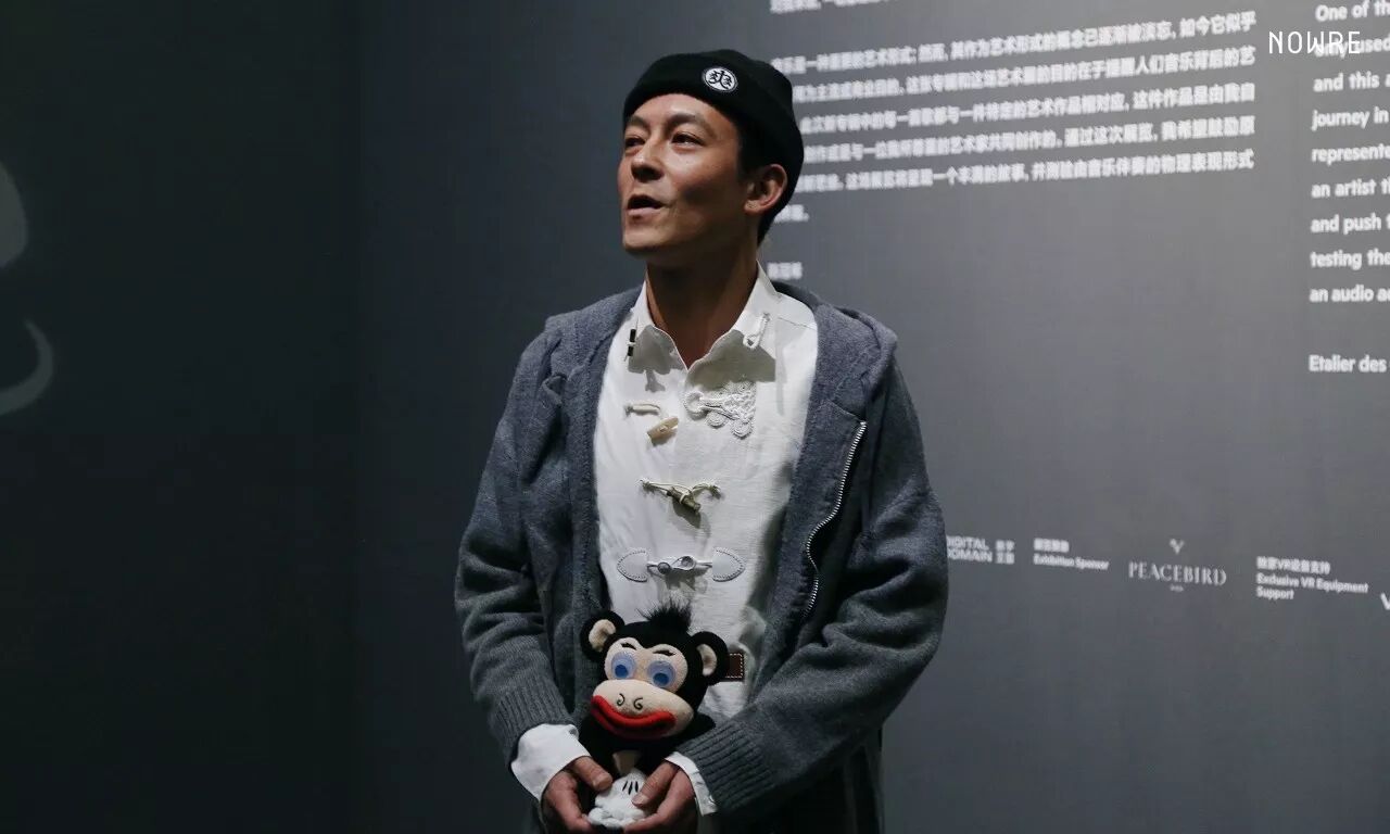 陈冠希在《音术》导览现场,手中全程抱着一只可爱 “猴子”