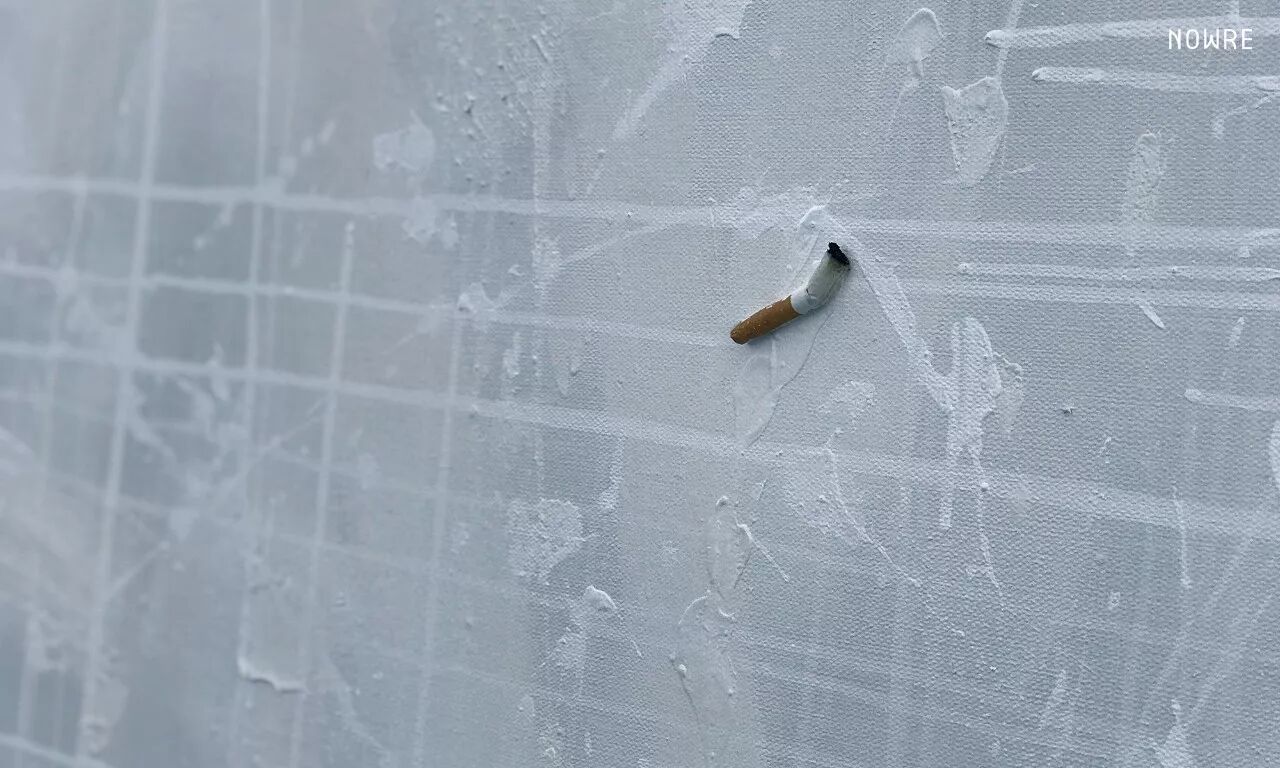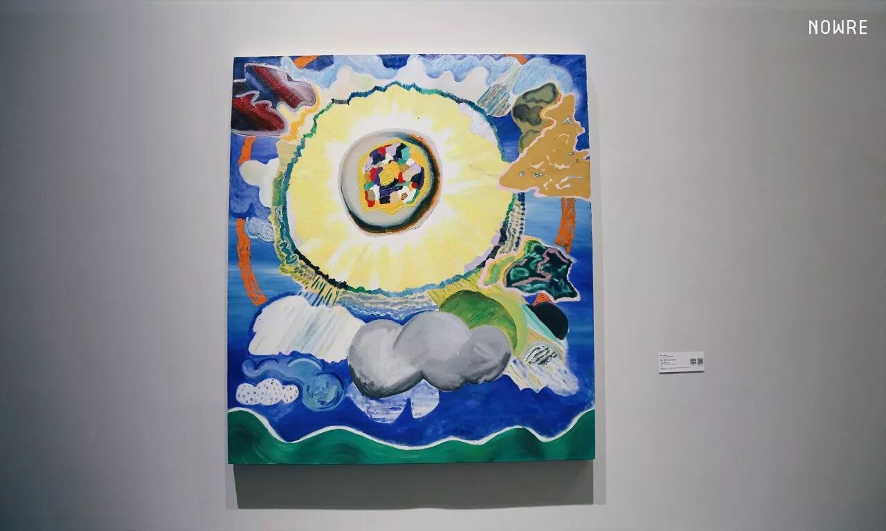 这是另一幅陈冠希为本次展览专门创作的油画作品,展区设置的很亮,有点 “云里雾里” 的感觉。据说在这幅画上能看到三个字母,另外你还能看到陈冠希喜欢抽的 Marlboro。