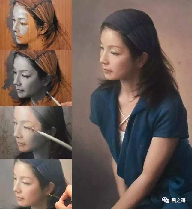 具体地说,是在底涂层的素描稿上面,罩染半透层调子,再随型涂上比较弱的半透明半覆盖色层,中间局部使用干擦的掠层法,并反复实施透明罩染。这样多层的透层与不透层相互折射作用产生的光学灰色层称光学灰的效果。