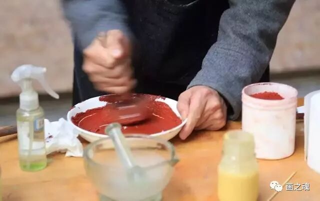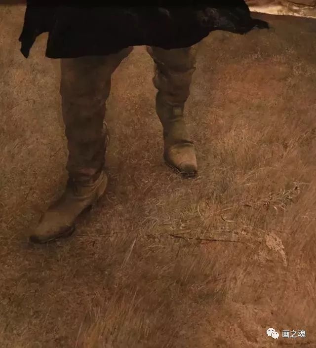 他只在作画当日将适度的干性油与树脂加入到颜色里搅拌,做成一种适度的树脂软膏,使它柔软并具有很好的流动性,因而使得他在中层作画时利用这种软膏用湿加湿的画法(Wet in Wet),反复趁着色层未干前用这种新鲜调制的颜色把局部画完,它超过我们今天成批加工的锡管里的油画色。