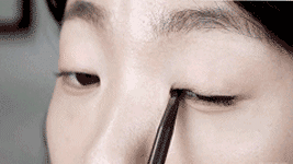 上眼线的中段稍宽些,能让眼睛看起来较圆,眼尾部分直直画出,视觉上拉长眼睛。