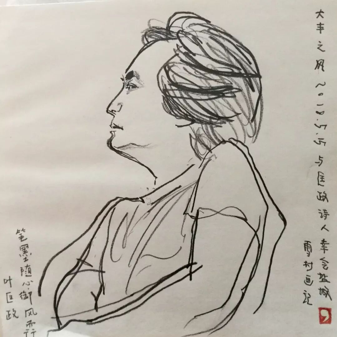 诗人叶匡政速写像。