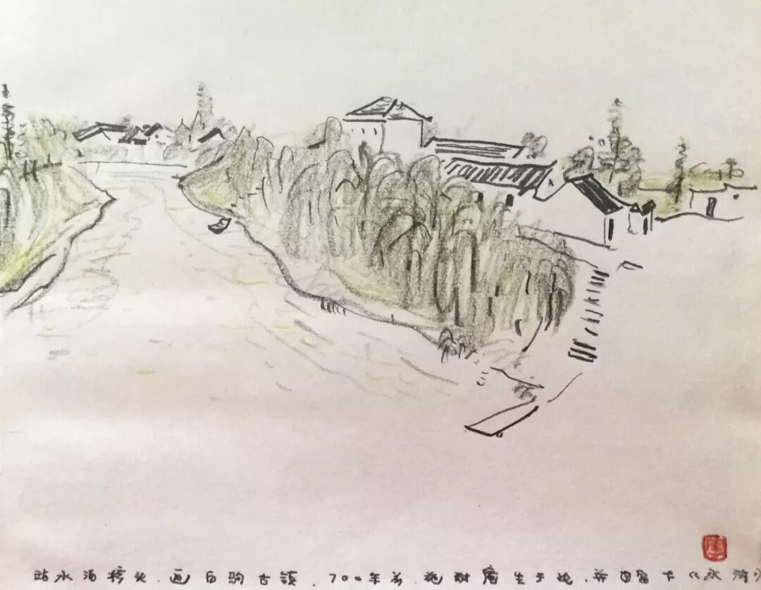 白驹古镇是施耐庵纪念馆所在地,在去往纪念馆的路上,见有一条河缓缓流淌,古意十足,遂放弃参观纪念馆,画下了古镇一角。