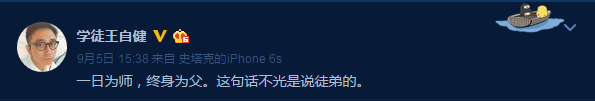王自健文称:“一日为师,终身为父。这句话不光是说徒弟的。 ”疑似对郭德纲意有所指。