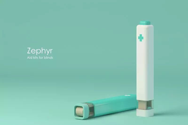 When the visually impaired treat their wound, they have to touch it and risk infection. Zephyr uses air to find their wound without pain or touching. Then the roller can cover the wound with salve and a bandage