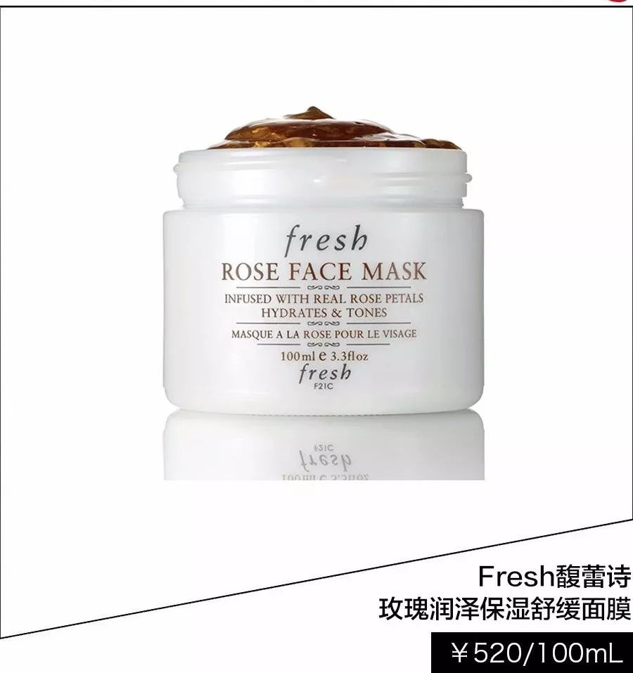 Fresh这款玫瑰面膜不管是从气味上还是质地上都给人一种享受的感觉,清新的玫瑰花香能够瞬间为你舒缓压力。柔滑的啫喱质地中富含天然的玫瑰花瓣,敷过之后能够为肌肤高效补水,还能及时改善肌肤的暗黄。