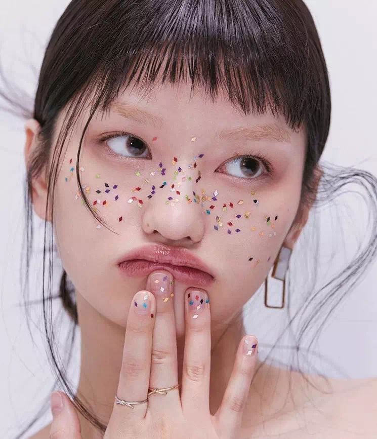 凌乱感的头帘让张嘉倪的脸颊看起来更小了,肤况又非常好,所以猛地一看感觉小姐姐不满十八岁呢!
