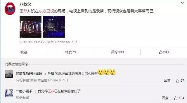 唐嫣罗晋张继科假唱什么的暂且不说,就说说天后王菲,东方卫视号称邀请到王菲,然而据现场观众爆料王菲根本就没有到现场,而是播放一段事先录制好的VCR,并且即使是录播,王菲唱的也很勉强,败笔中败笔啊。