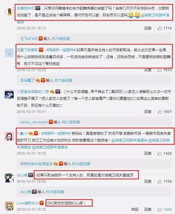 而湖南卫视网络会员直播,因为只有芒果会员才能在官网上看,并且会员本身数量有限。至于嘉宾呢,之前说好的杨洋、黄子韬、胡彦斌都临时退场,而直播现场节目还临时调整拿掉9个节目,吴昕跟鞠婧祎合演的节目删掉的事情更直接上了热搜的第一位。