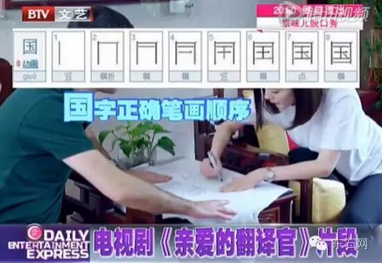在《亲爱的翻译官》剧中,杨幂饰演的乔菲在教外国人写中国字的时候,四个字的成语,有两个字都有问题,到底咋回事?请看下面配图: