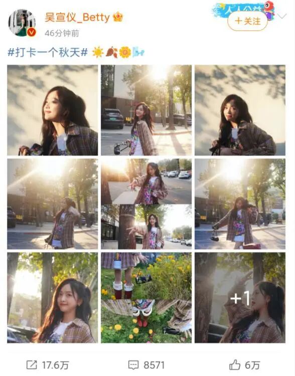 随着秋日的即将结束,各个娱乐圈的女星们都晒起了自己的秋日随拍。就连许久没在圈里冒泡的吴宣仪也晒起了自己的秋天随拍,网友们纷纷前来打卡!
