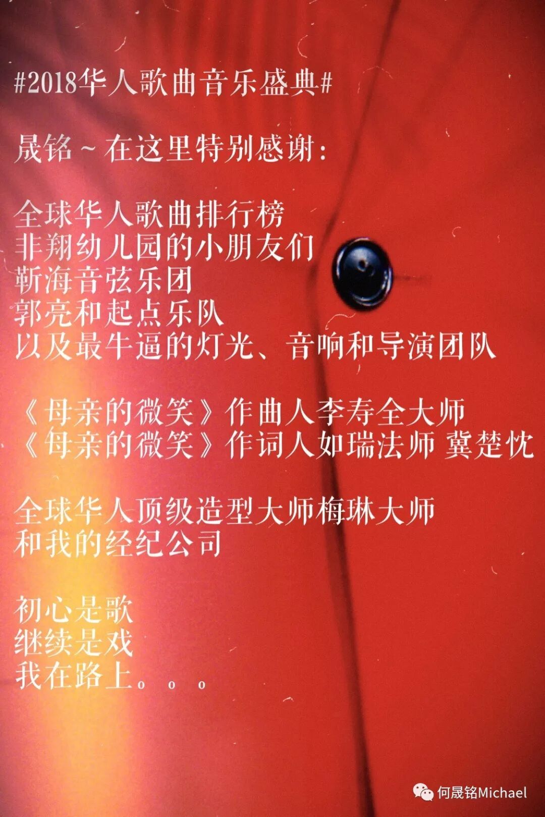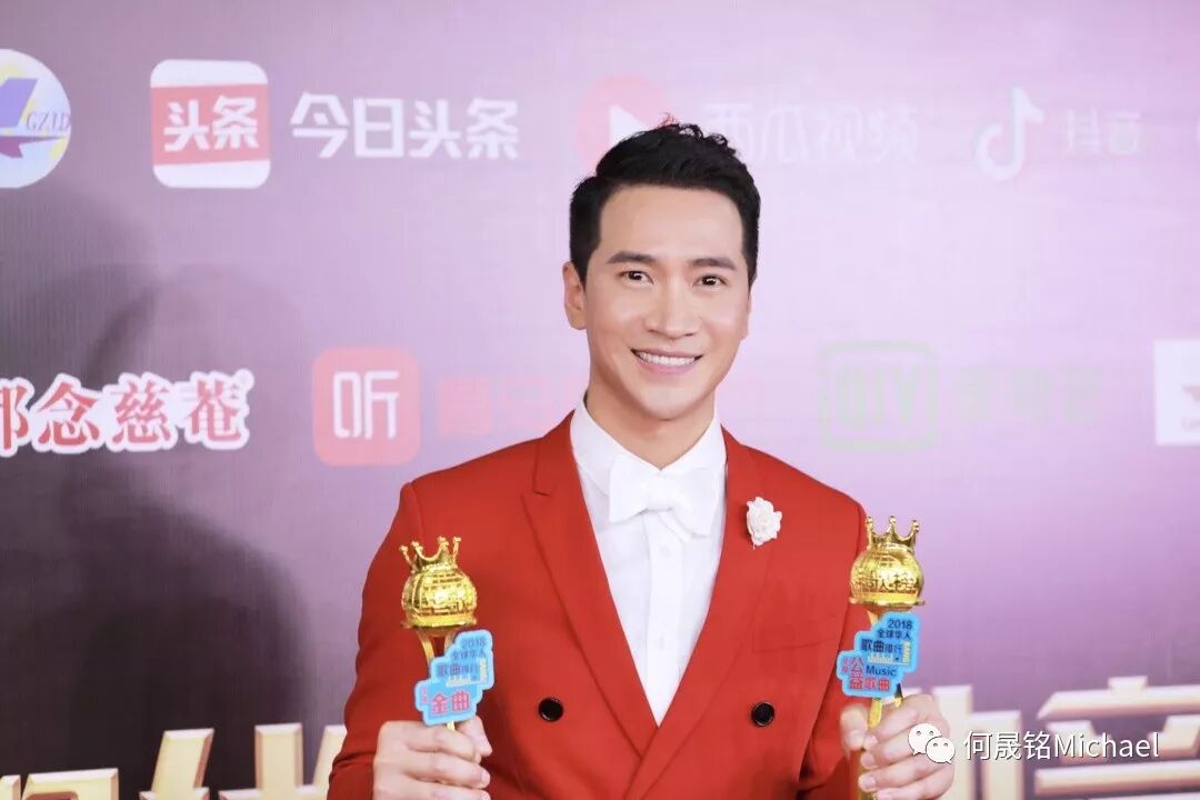 继海内外千只合唱团同唱一首歌后,何晟铭《母亲的微笑》在#2018华人歌曲音乐盛典#上斩获“年度最佳公益歌曲”和“年度金曲#两项大奖,可喜可贺。华歌榜“2018年度全能男艺人五强”之一的何晟铭身着Christian Dior华服出席典礼,倾情演唱赢得满堂喝彩。特别鸣谢华人世界顶级造型师梅琳的全程打造,光彩夺目。