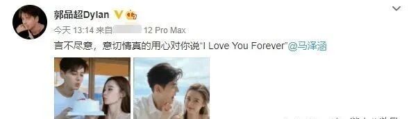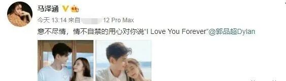 两人发文并艾特对方:言不尽意,意切情真的用心对你说“I Love You Forever”,言简意赅,深情满满。