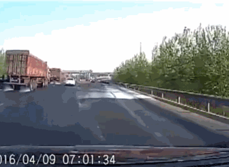 这是一位车主用行车记录仪记录下的交通事故,六环上,一辆大货车因为爆胎失控撞上了停在急用车道上的绝版迈巴赫。绝版!绝版!绝版!重要的事情要强调三遍。