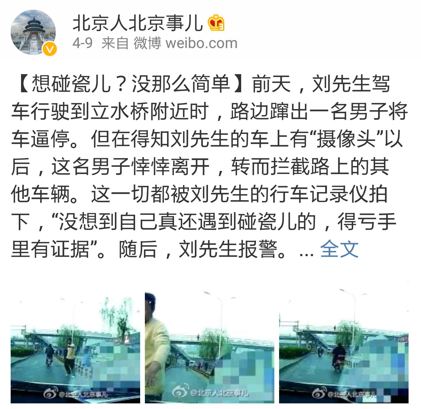当然不是每个行车记录仪都有这样的好福气能拍出以上的大片,不过用来破案维护自己车主的利益还是绰绰有余的。想碰瓷?您得先问问他答应不答应!