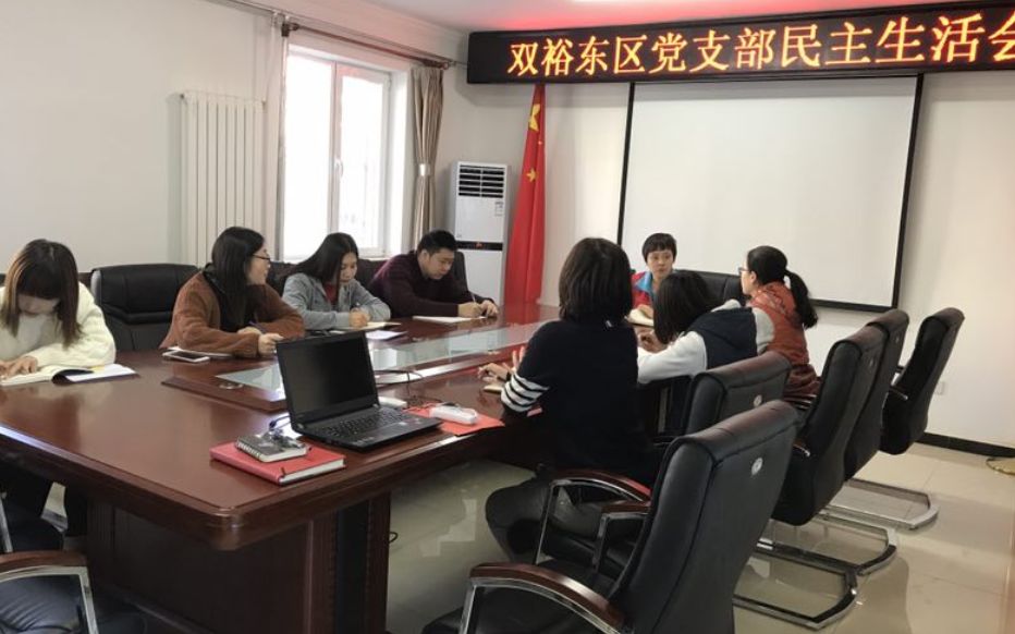 1月10日,双裕东区党支部召开民主生活会。双裕东区社区居民委员会9名工作人员参加会议。会上,党支部副书记安排了2018年第一季度工作内容,强调社区工作人员要多下社区、多观察、多学习、多关注群租房安全隐患、多慰问老人、多开展活动。此外,参会人员进行了批评与自我批评。
