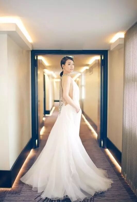 马思纯一身白纱演绎小清新式的优雅,蒂芙尼珠宝傍身精致华美。