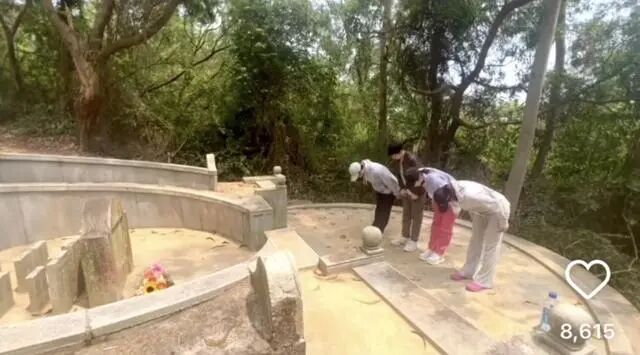 千辛万苦终于抵达了甄家的祖坟,虽然没有大搞仪式,既没有烧香,也没有打扫,但是众人在祖先的坟头都表现得相当恭敬。甄子丹手捧一束鲜花,摆放在了祖先的坟墓前,随后他示意妻子、一对子女一字排开,一家四口对着祖先的坟头很虔诚地进行了三鞠躬,表达了作为子孙对先辈最崇高的敬意。