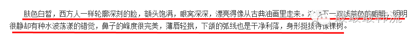 肤色白皙,有着西方人一样轮廓深刻的脸,额头饱满,漂亮的像从古典油画里走出来的人物↓