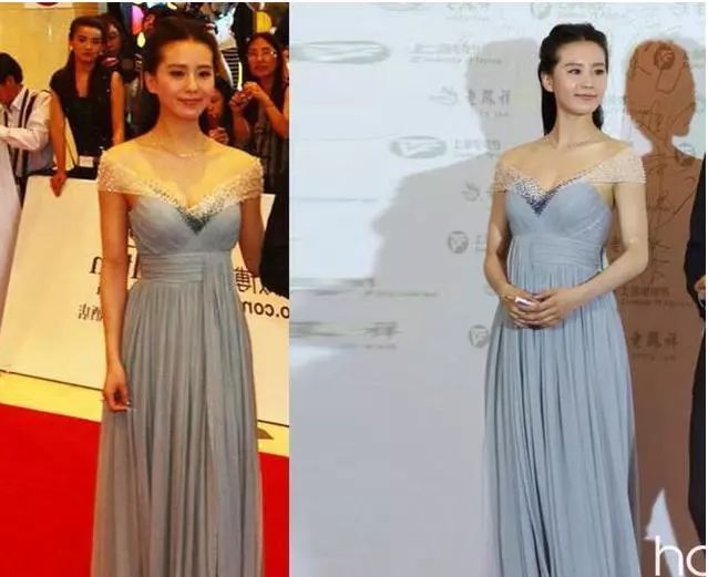 其实这款刘诗诗也是穿过的。刘诗诗穿烟灰色长裙,宛如公主一般。估计是因为诗诗从小就练习芭蕾舞蹈,她的身上有一种独特的气质,让她看上去优雅高贵。